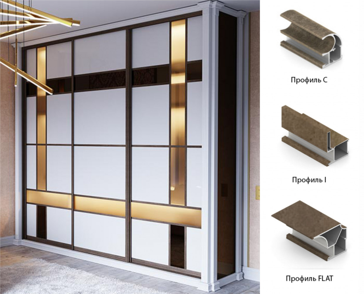 Система "Стандарт" — базовая линейка профиля, его конструкция позволяет выдерживать высокие нагрузки и изготавливать двери больших размеров. Широкий ассортимент профилей, комплектующих и цветов позволяет создать уникальные решения шкафов-купе. Базовый элемент системы - вертикальные профиля С (скругленный), I (квадратный), Flat (плоский).