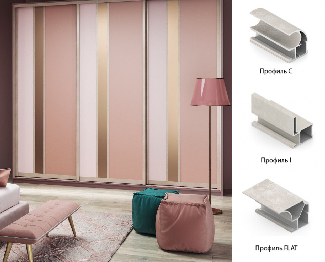 Система "Стандарт" — базовая линейка профиля, его конструкция позволяет выдерживать высокие нагрузки и изготавливать двери больших размеров. Широкий ассортимент профилей, комплектующих и цветов позволяет создать уникальные решения шкафов-купе. Базовый элемент системы - вертикальные профиля С (скругленный), I (квадратный), Flat (плоский).