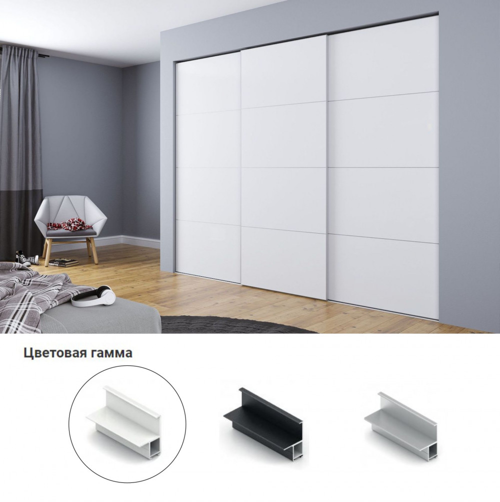 Система профилей Nova оснащена современными роликами, обеспечивающими бесшумный и плавный ход дверей. Уникальные кронштейны разработаны специально для того, чтобы скрыть верхнюю направляющую. Система предполагает использование мебельной плиты толщиной 16 мм и позволяет изготовить двери шириной до 1500 мм, высотой̆ до 2600 мм и весом до 80 кг. Многообразие вариантов наполнения позволяет сделать каждый дизайн оригинальным и соответствующим вашему вкусу.